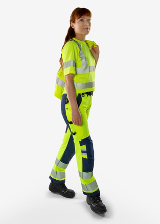 Nachhaltige High Vis Stretchhose für Damen, mit zusätzlichen Stretcheinsätzen am Bund für überlegenen Komfort. Voller 4-Wege-Stretch aus recycelten Materialien sorgt für optimale Bewegungsfreiheit. Verstärkt an exponierten Stellen. Mit EPD (Environmental Product Declaration). Teil der Fristads Green Kollektion / Nachhaltig / 4-Wege-Stretchmaterial / Rippenstrick-Stretcheinsätze am Bund / Strapazfähiges Ripstop 4-Wege Stretchmaterial an Gesäß und Oberschenkelrückseite / Verdeckter Knopf vorne / D-Ring / 2 Vordertaschen / 2 große Taschen hinten, eine mit Reißverschluss / Beintasche mit Druckknopfverschluss, eine mit Reißverschluss / Doppelt verstärkte Schrittnaht / Hammerschlaufe / CORDURA®-verstärkte Zollstocktasche mit Werkzeugtasche, Stifttasche, Knöpfen und Schlaufen für Messer / Beintasche mit Druckknopfverschluss, Reißverschlusstasche und D-Ring / CORDURA®-verstärkte Knietaschen mit Innenöffnung / Höhenverstellung für Kniepolster in der Knietasche / CORDURA®-verstärkter Beinabschluss / Verdeckter Stiefelhaken / Zugelassen nach ISO 20471 Klasse 2, EN 14404 zusammen mit Kniepolstern 124292 und EN 13758-2 UPF 40+ Sonnen-UV-Schutz. Farbe 271 ist zugelassen nach RIS-3279-TOM Ausgabe 1 UK Railway Standard / Geprüft und zugelassen nach 50 Wäschen / Mit EPD (Environmental Product Declaration) - Registrierungsnummer 3888 bei environdec.com / Stretchgewebe 44% PTT (teilw. biobasiertes Material), 44% Polyester, 12% recycelter Polyester. Ripstop-Stretchgewebe 87 % Polyamid, 13 % Elastan.