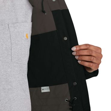 · Durchgehender Frontreißverschluss mit Sturmklappen innen und außen mit Druckknopfverschluss