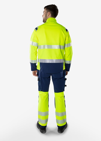 Nachhaltige High Vis Stretchjacke aus recycelten Materialien. Durchgängiger 4-Wege-Stretch für überragende Flexibilität und Bewegungsfreiheit, sowie an exponierten Stellen verstärkt. Mit EPD (Environmental Product Declaration). Teil der Fristads Green Kollektion / Nachhaltig / 4-Wege-Stretch-Gewebe / Strapazifähiges Ripstop 4-Wege-Stretch an den Ärmelenden und im unteren Rückenbereich / Abgedeckter Haupt-Reißverschluss bis zum oberen Kragenrand / Brusttasche mit vertikalem Reißverschluss und innenliegendem Ausweishalter / 2 Vordertaschen mit Reißverschluss / Verstellbare Ärmelbündchen / Verlängerter Rücken / Zugelassen nach EN ISO 20471 Klasse 3 und EN 13758-2 UPF 40+ Solar UV-Schutz. Farbe 271 ist nach RIS-3279-TOM Ausgabe 1 UK Railway Standard zugelassen / Geprüft und zugelassen nach 50 Wäschen / Mit EPD (Environmental Product Declaration) - Registrierungsnummer 3886 bei environdec.com / Stretchgewebe 44% PTT (teilw. biobasiertes Material), 44% Polyester, 12% recycelter Polyester. Ripstop-Stretchgewebe 87 % Polyamid, 13 % Elastan.