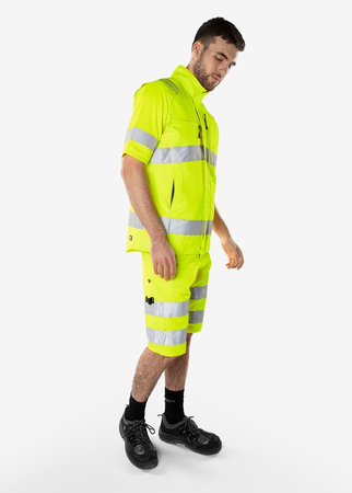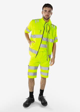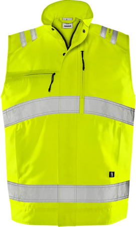 Nachhaltige High Vis Weste aus Bio-Baumwolle und recyceltem Polyester. Funktionelle Taschen mit Reißverschlüssen sowie verstellbarer Bund mit Knöpfen. Mit EPD (Environmental Product Declaration). Teil der Fristads Green-Kollektion / Nachhaltig / Verdeckter Reißverschluss mit Druckknopfleiste bis zum oberen Kragenrand / Brusttasche mit Reißverschluss und Ausweishalter / Brusttasche mit vertikalem Reißverschluss / 2 Vordertaschen mit Reißverschluss / Verstellbarer Bund mit Knöpfen / Verlängerte Rückenpartie / Geprüft und zugelassen gemäß EN ISO 20471 Klasse 2 / Farbe 230 ist zusätzlich geprüft und zugelassen gemäß RIS-3279-TOM Ausgabe 1 UK Railway Standard / Zugelassen nach 50 Wäschen / Industriewäsche geeignet gemäß ISO 15797 / Mit EPD (Environmental Product Declaration) - Registrierungsnummer 3879 bei environdec.com / 70 % recyceltes Polyester, 30 % Bio-Baumwolle.