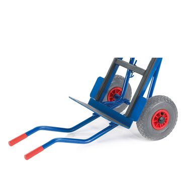 Stahlkonstruktion für viele Karren -- mit Griff und passenden Hacken für unsere Sackkarren