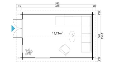 Das Gartenhaus Alexandra ist ein echter Hingucker für Ihren Garten! Ideal geeignet als Hobbyraum oder Homeoffice. Das Gartenhaus hat eine Wandstärke von 44 mm und wird mit einer winddichten Chaletverbindung konstruiert. Das zweite Fenster kann individuell eingebaut werden, der Ausschnitt hierfür erfolgt bauseits. So erhalten Sie zusätzliche Flexibilität und können den Lichteinfall nach Wunsch variieren. Auf einer Fläche von 13,72 m² lässt es sich hier herrlich entspannen und gemütliche Stunden im Freundeskreis verbringen