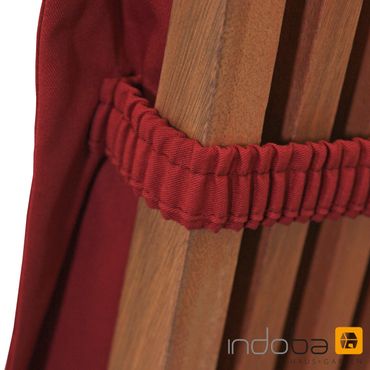Umlaufend befindet sich ein optisch ansprechender Stehsaum. Für den optimalen Sitz der Auflage sorgt ein elastisches Halteband am Rückenteil, zwei Bindekordeln im Lehnenknick und ein verstellbares Halteband im unteren Bereich. Damit lässt sich diese Auflage an allen Sonnenliegen optimal befestigen.