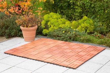 Verleihen Sie Ihrer Terasse oder Ihrem Balkon ein besonderes Flair mit den Klickfliesen aus Akazienholz.